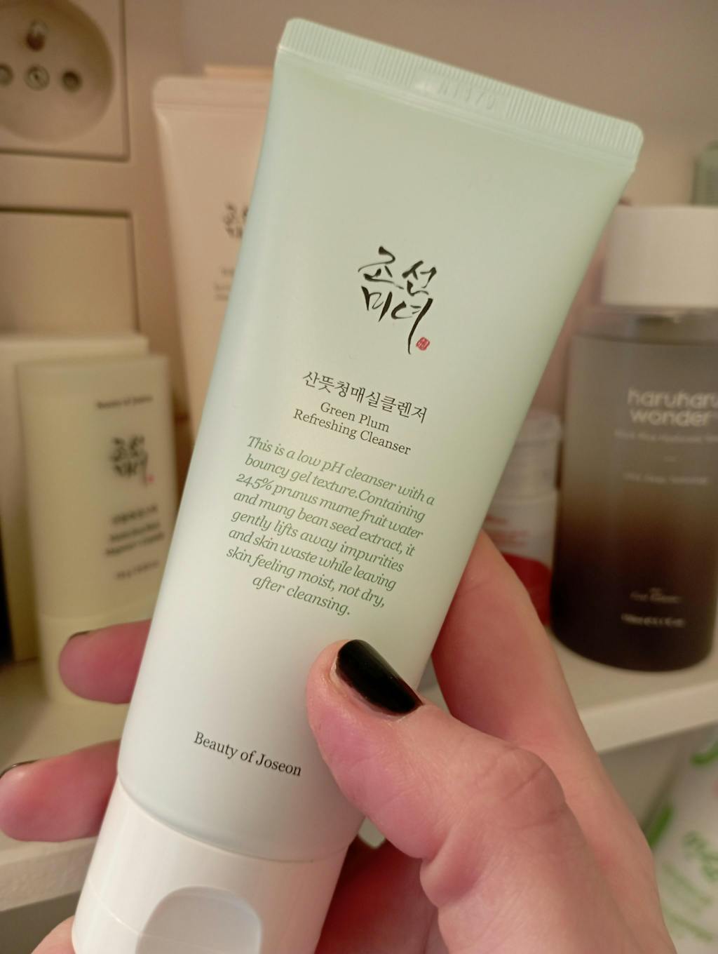 The Beauty of Joseon Green Plum Refreshing Cleanser is a low pH cleanser which contains mung bean extract that creates a synergistic effect with plum water, a natural herbal ingredient, and helps remove dead skin cells and sebum. This light gel-type hypoallergenic, mildly acidic cleanser does not dry out the skin easily and helps retain moisture after cleansing. The plum water and mung bean seed extract give a fresh feel while also keeping the skin moist and healthy.
