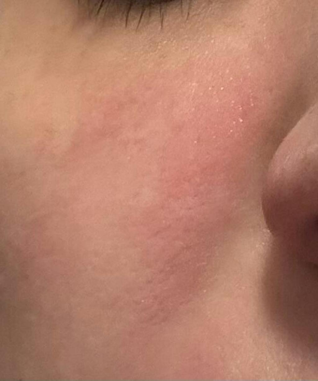 De huid zwelt binnen de 3 minuten op en wordt rood. Ik heb normaal geen gevoelige huid dus ik vind het zeer verdacht!
