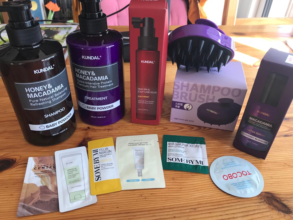 J'ai pris la gamme complète : shampooing, après-shampooing, sérum et head spa. J'ai aussi pris la brosse massante. C'est un vrai plaisir d'utiliser ces produits. L'odeur est super agréable (baby powder et cherry blossom), mes cheveux sont doux. Les pellicules grasses et les démangeaisons ont presque entièrement disparus.