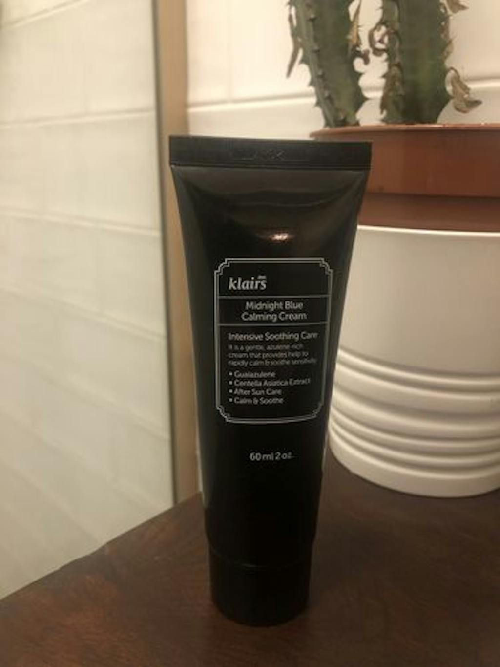De Lieve Klairs Midnight Blue Calming Cream is zacht en helpt de huidbarrière te versterken terwijl het de extreem geïrriteerde, gestreste huid kalmeert. Het hoofdingrediënt, guaiazuleen (dat de crème zijn unieke natuurlijke blauwe kleur geeft), is een plantaardig bestanddeel uit kamilleolie, een krachtig kalmerend ingrediënt dat de ontstoken huid kalmeert en verkoelt. Het is ook effectief voor celregeneratie. Een extract van Centella asiatica, afkomstig van een plant uit Madagaskar die bekend staat als tijgergras, helpt de beschadigde huid te regenereren en voorkomt littekens. Deze crème kan ook worden gebruikt om een zonverbrande huid, roodheid na het scheren en irritatie na spot-extractie en laserprocedures te kalmeren.
