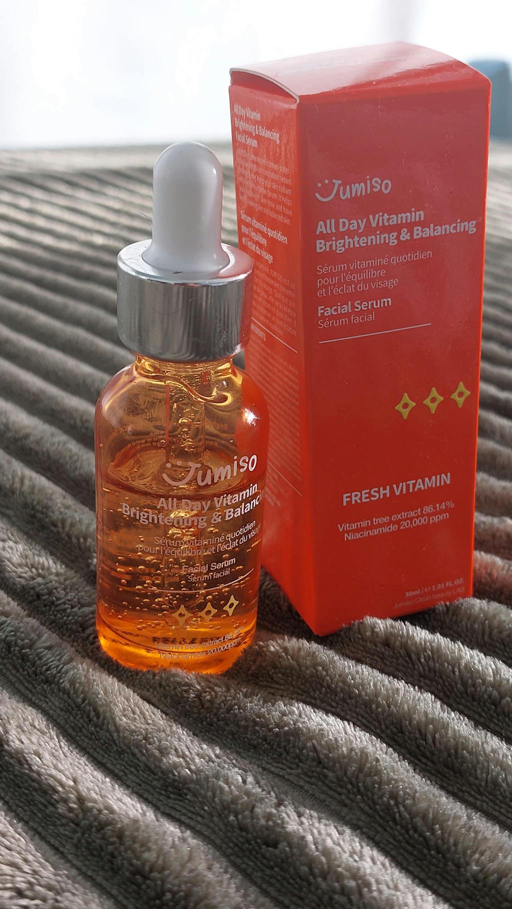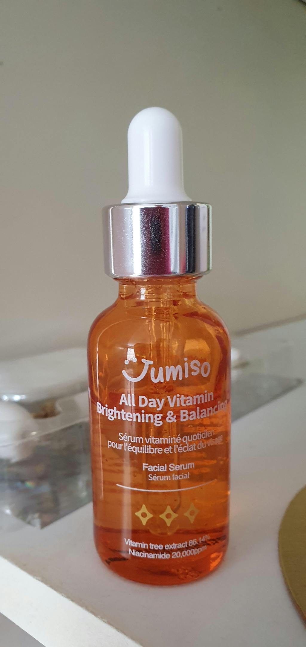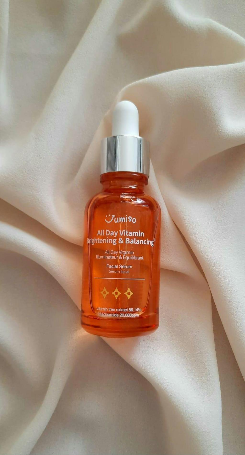 Het Jumiso All Day Vitamin Brightening and Balancing Facial Serum verheldert, egaliseert actief en verhoogt de volheid en elasticiteit. Dit aanvullende serum is verrijkt met natuurlijke en krachtige ingrediënten zoals vitamines A, B, C, D, E en K om het uiterlijk te verbeteren en een schitterende boost van jeugdige uitstraling te geven. Perfect voor alle huidtypen, dit serum helpt te rehydrateren, celschade te herstellen, roodheid te verlichten en de teint te balanceren.