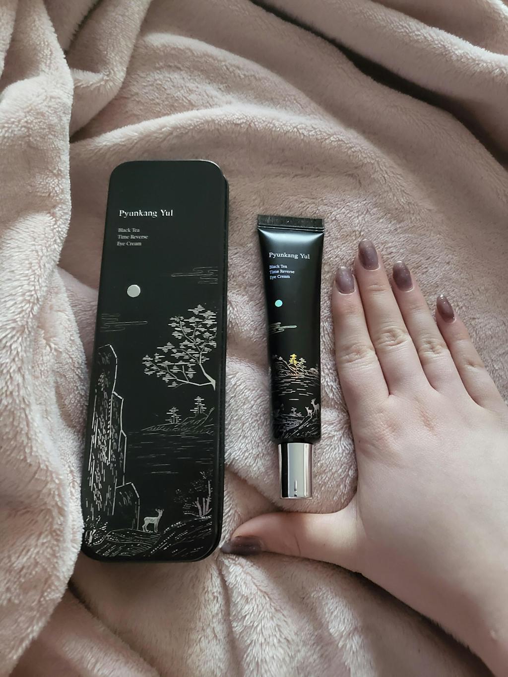 De Pyunkang Yul Black Tea Time Reverse Eye Cream is een geurloze, voedende oogcrème die gefermenteerde zwarte thee en papier-moerbeisextracten infuseert om het gebied onder de ogen te revitaliseren voor een vernieuwde look. Verrijkt met karitéboter, macadamia-olie, hyaluronzuur en ceramide om de vermoeide huid te voeden en tegelijkertijd vocht vast te houden. Helpt het verschijnen van rimpels en fijne lijntjes te verminderen. Geformuleerd met EWG-geverifieerde, veilige ingrediënten; huidirritatietest voltooid.